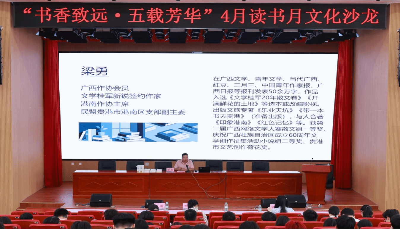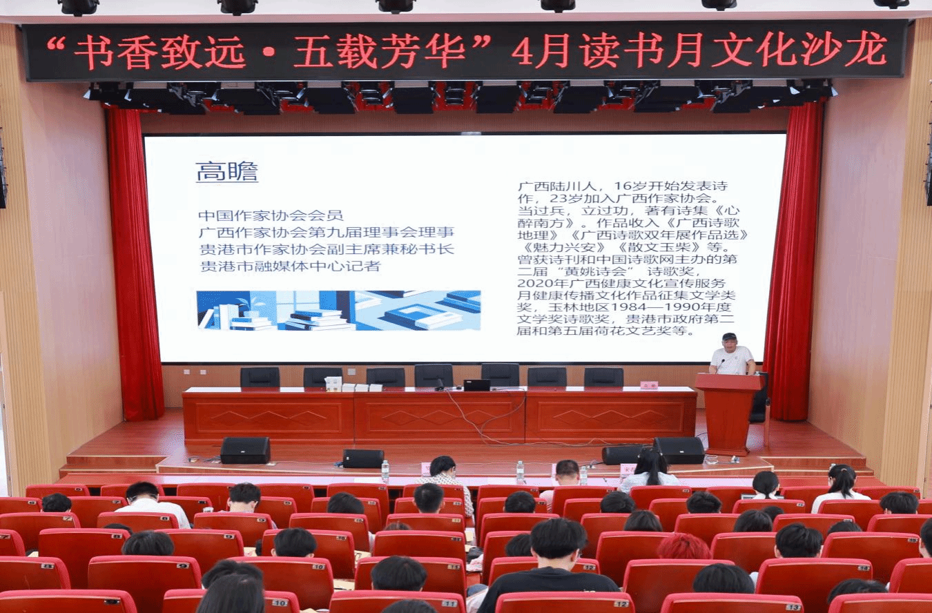 活动特邀了广西作协会员、文学桂军新锐签约作家、港南作协主席、民盟贵港市港南区支部副主委梁勇;中国作家协会会员、贵港市作家协会副主席兼秘书长、贵港市融媒体中心记者高瞻;中国诗歌学会会员、广西作协会员、广西文艺评论家协会会员、贵港市港北区作家协会副主席宋春来与师生共赴这场文化之约。
