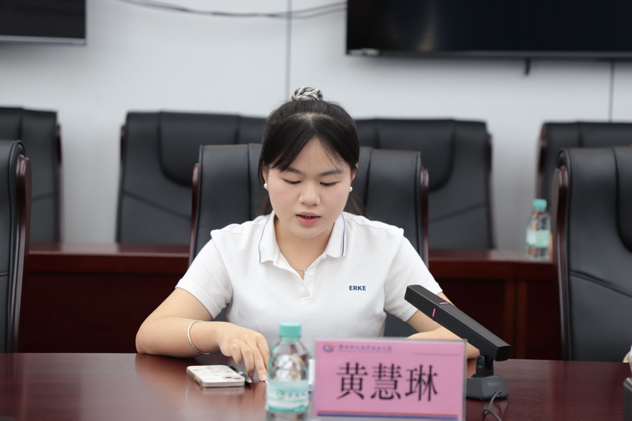 国家奖学金获得者代表:物流管理学院覃婉清、物流商学院刘思思同学两位同学他们的分享学习经验和成长历程。