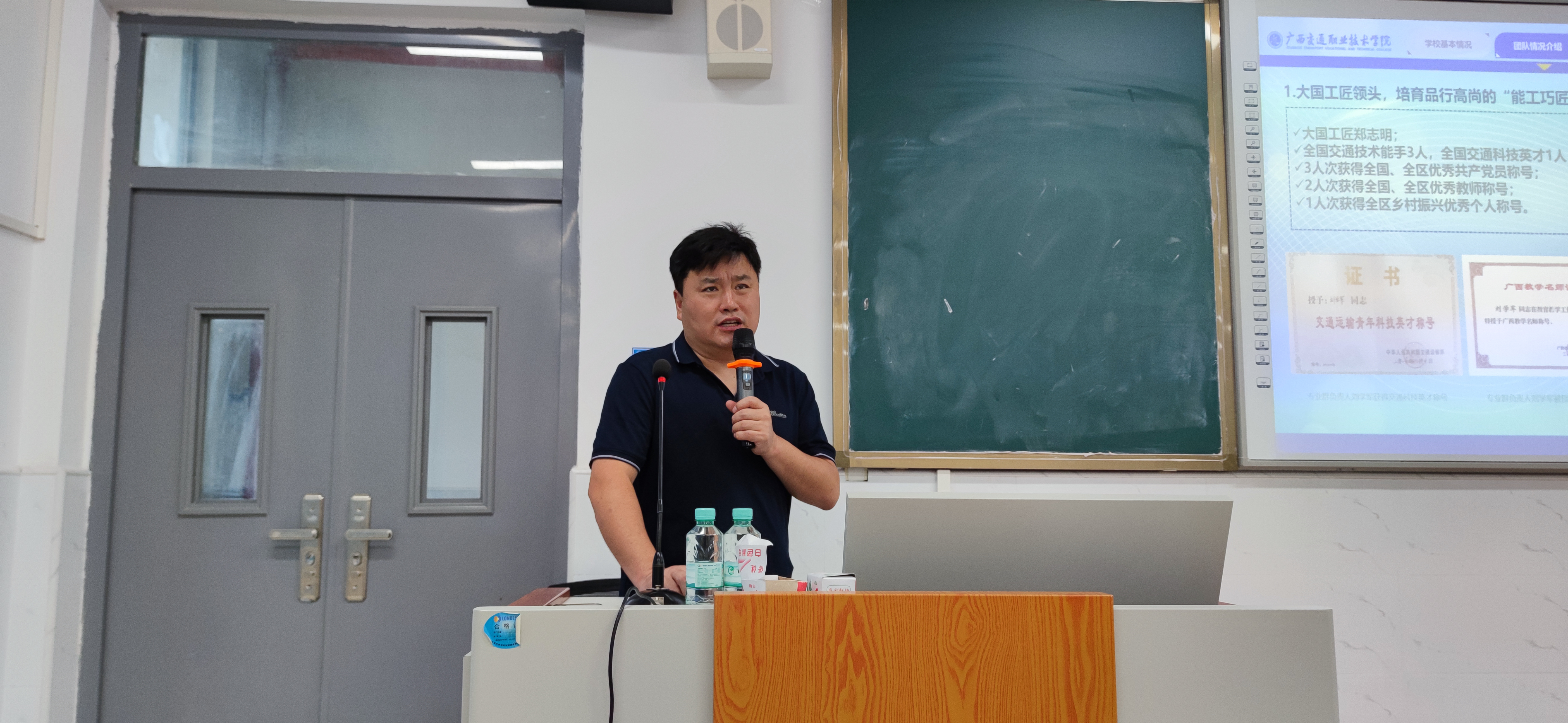 师资队伍是学校发展的第一资源,以教师教学创新团队建设为抓手,开展师资队伍建设是专业群乃至二级学院建设的第一要务,为提升各二级学院教研室、专业带头人、骨干教师教学创新团队建设能力,2023年9月3日下午,物流交通学院开展了题为“党建铸魂、匠心聚力、行业赋能”的教师教学创新团队建设主题活动,活动邀请了广西交通职业技术学院汽车工程学院院长刘学军教授授课,活动由物流交通学院院长莫军主持。