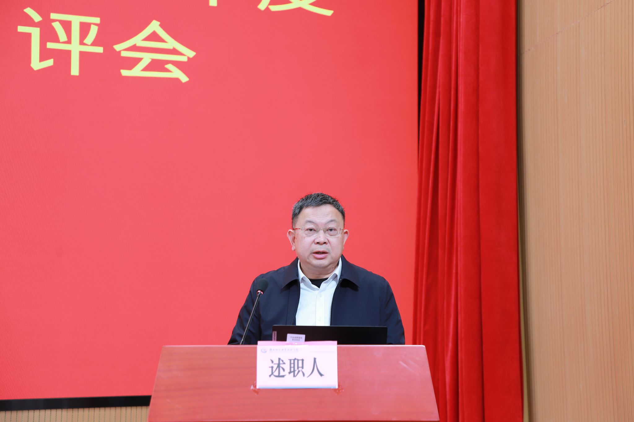 2025年1月9日上午,我校在太行楼3楼报告厅召开2024年度中层领导人员述职测评会,全面总结过去一年的工作成效,明确未来发展方向,进一步提升学校的管理水平和办学质量。学校党委书记韦光茂,党委副书记、校长朱海强,党委副书记、工会主席杨一笔,纪委书记覃丽燕,副校长陈继文、陈赋光、梁杰参加会议。会议由杨一笔主持。