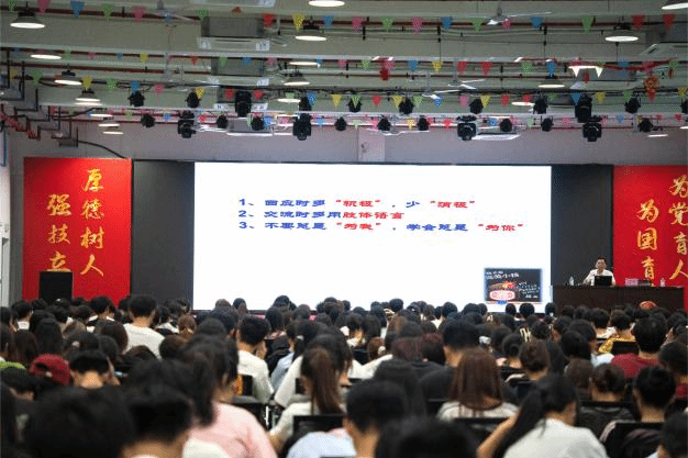 艾军以《大学新生的角色转换与心理适应》为题,结合多年心理健康教育经验和具体案例,围绕选择困扰、人际困扰、学习困扰、人生困扰四个方面详细阐述了新生的角色转换与心理调适的方式方法。
