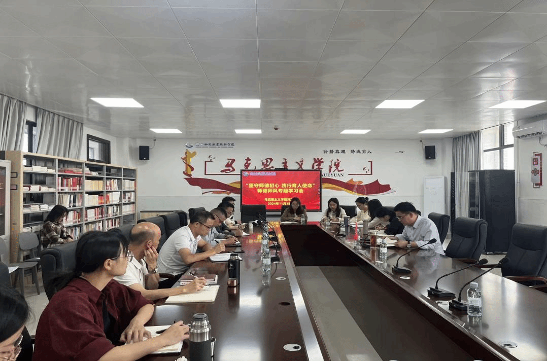 为大力弘扬教育家精神,进一步加强师德师风建设,引导教师坚守育人初心,激发教师爱岗敬业精神。2024年11月18日上午,马克思主义学院党支部开展“坚守师德初心 践行育人使命”师德师风专题学习会,学院全体教师党员参加学习会,会议由支部书记苏凯同志主持。