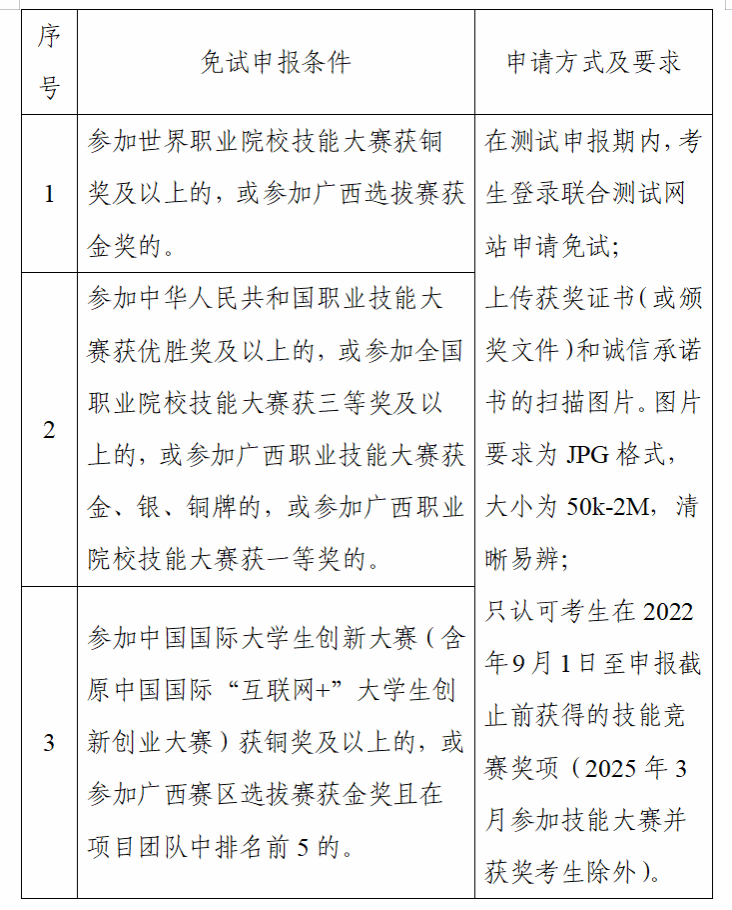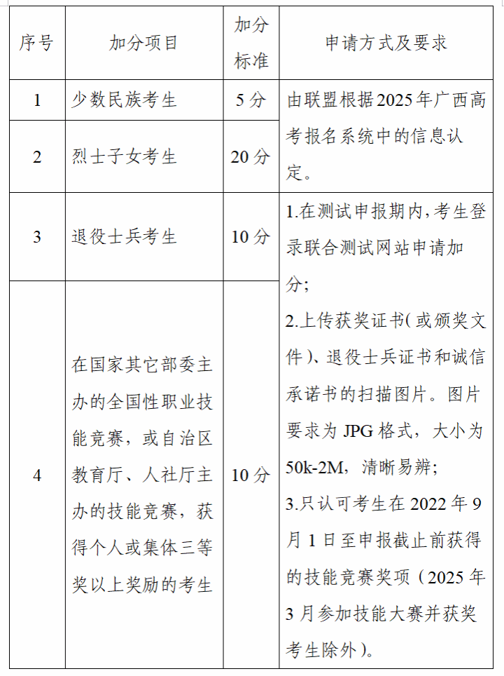经联盟院校统一评审认定免试资格及加分,于2025年3月18-29日在广西高职高专招生网站(https://www.gxzslm.cn/)公示。