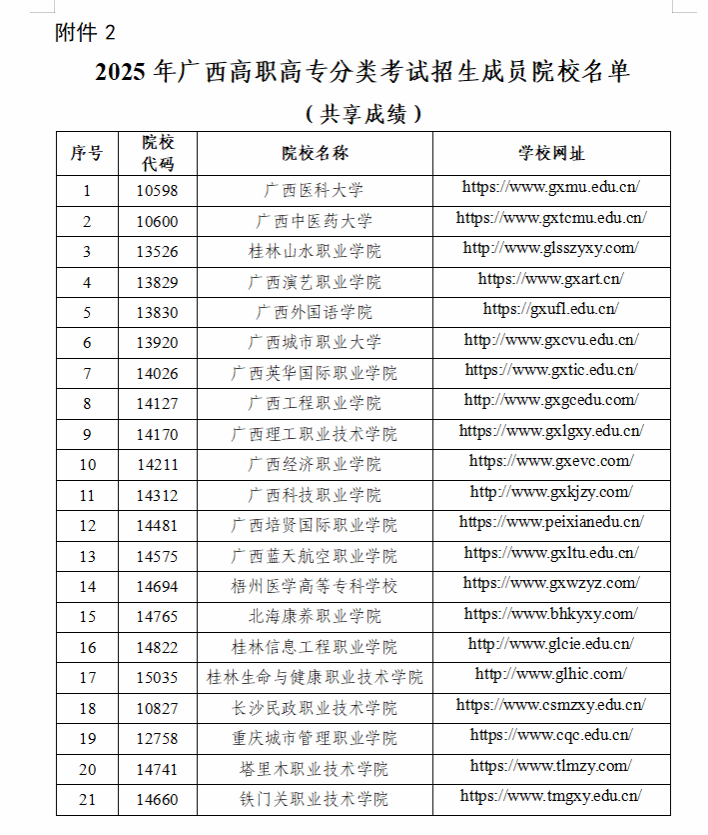 2.2025年广西高职高专分类考试招生成员院校名单(共享成绩)