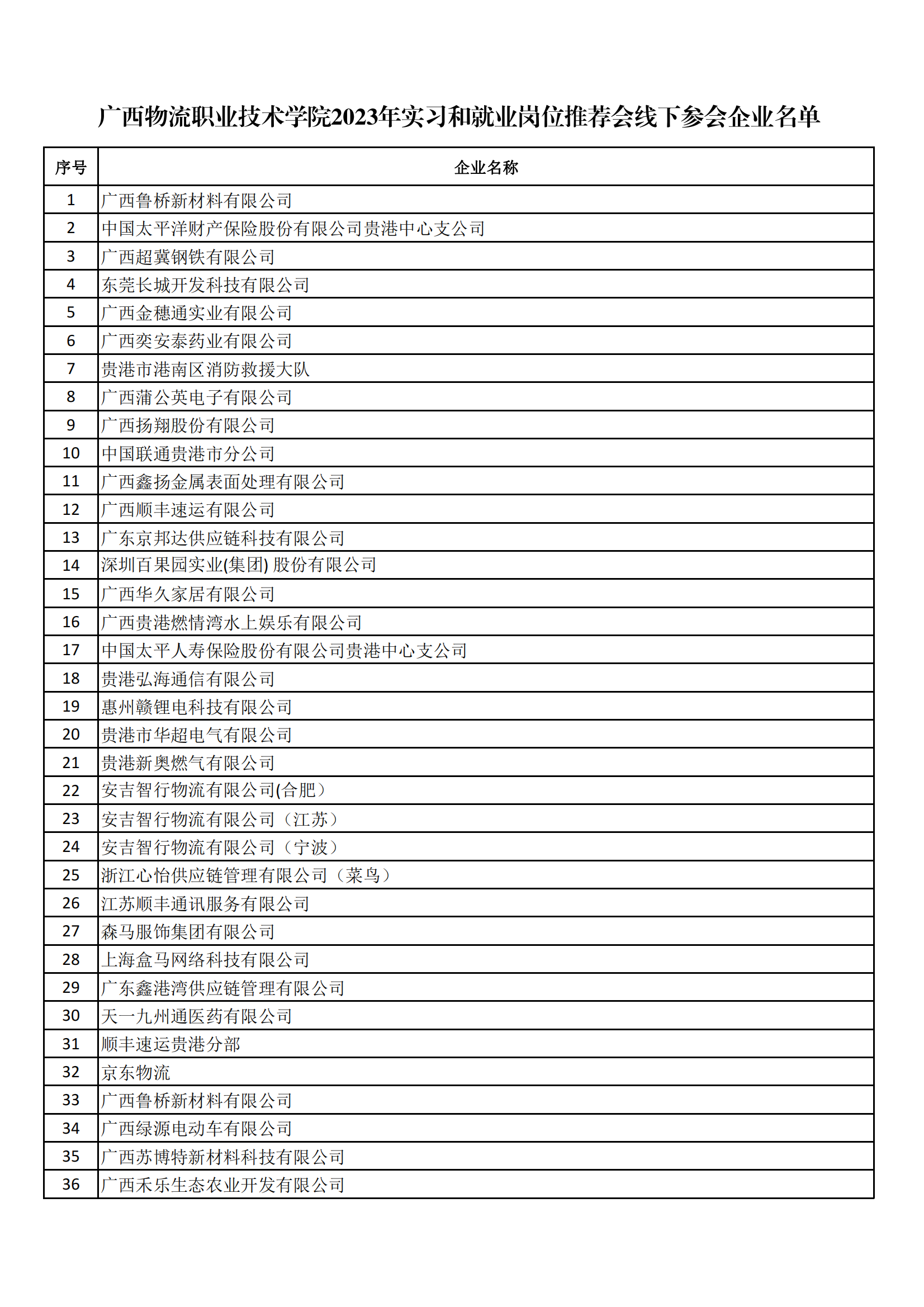 广西物流职业技术学院2023年实习和就业岗位推荐会线下参会企业名单