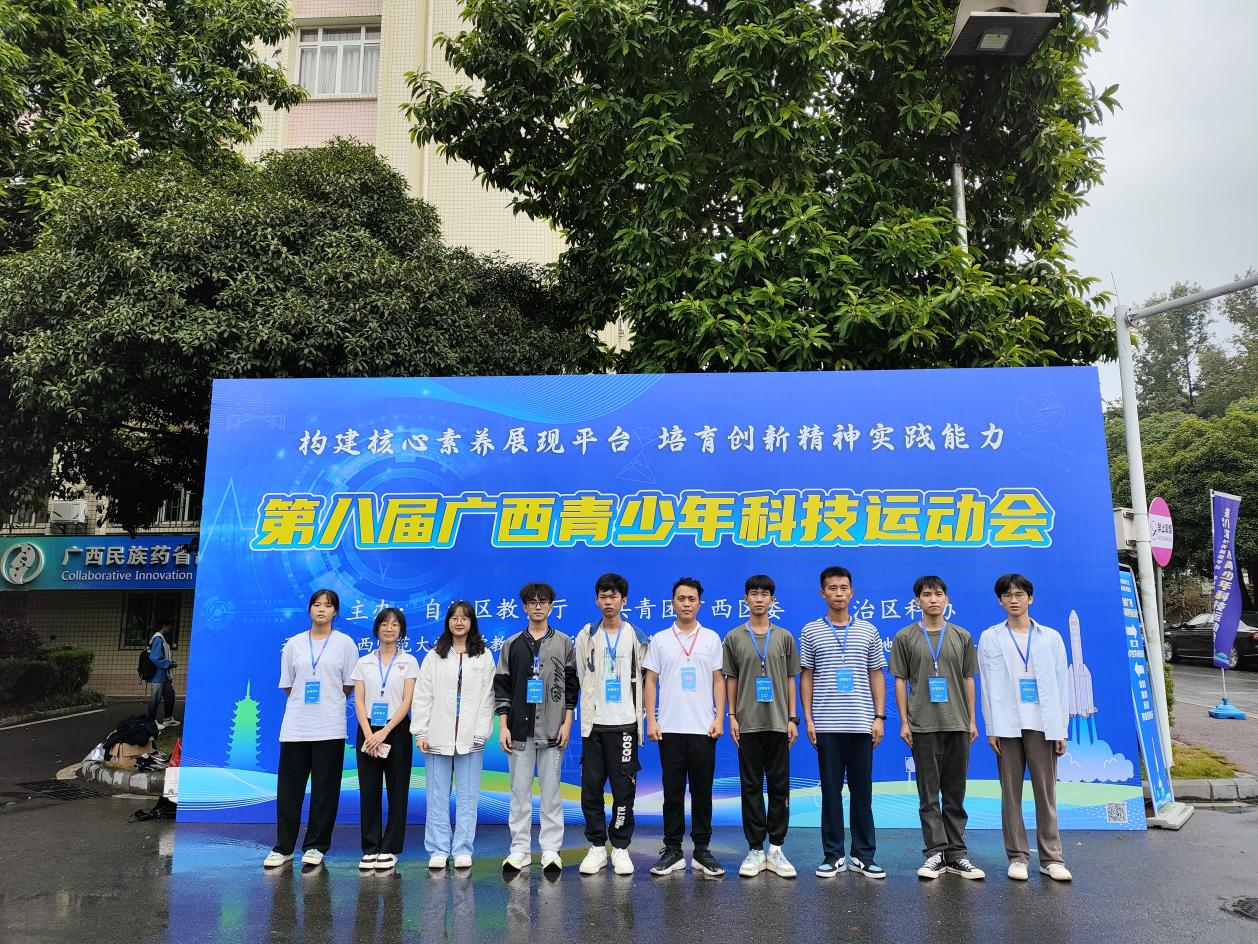 10月29日,在广西壮族自治区教育厅、共青团广西区委、自治区科协主办的“第八届广西青少年科技运动会”决赛中,我校学生马国壮、卢永正、周锦成、突破大学组自制小车竞速(自制电池)赛项新纪录,荣获赛项第一名,斩获一等奖,黄敏瑞荣获大学组铁线陀螺赛项三等奖,彭子荥、骆浩贤、李林威荣获自制小车竞速(自带电池)赛项三等奖