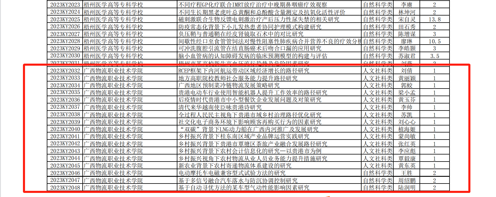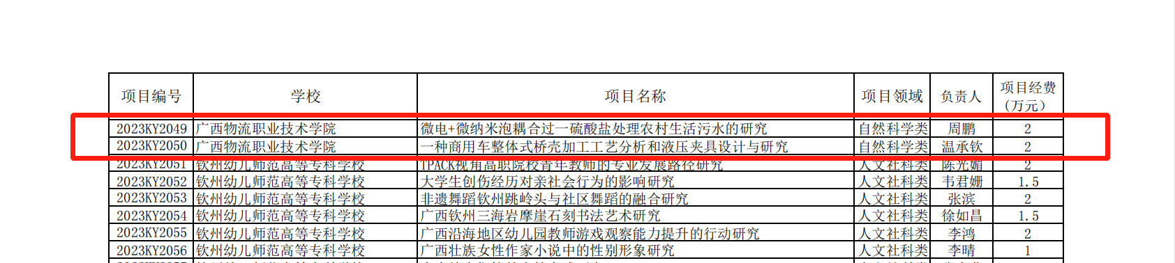 近日,根据《自治区教育厅关于公布2023年度广西高校中青年教师科研基础能力提升项目名单的通知》(桂教科研〔2023〕2号),我校教师申报的19个项目获得2023年度广西高校中青年教师科研基础能力提升项目立项。近日,根据《自治区教育厅关于公布2023年度广西高校中青年教师科研基础能力提升项目名单的通知》(桂教科研〔2023〕2号),我校教师申报的19个项目获得2023年度广西高校中青年教师科研基础能力提升项目立项。