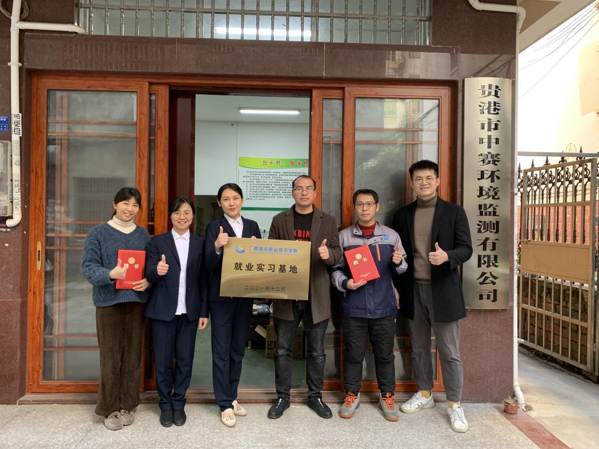 依托广西现代物流集团、广西环保产业投资集团有限公司的环保平台和业务,学院坚持以社会需求为宗旨,以就业为导向,强化学生实践技能的锻炼,积极开展校企合作,校外实习基地有广西环保产业投资集团有限公司、北控水务(广西)集团有限公司、广西桂物循环产业集团有限公司、广西金溢检测技术有限公司、广西环投水务集团有限公司、广西桂物再生资源有限公司、广西桂物金岸制冷空调技术有限公司、广西桂物民爆有限公司、广西桂贵环保咨询有限公司、贵港市中赛环境监测有限公司等、广西恒瑞环保技术有限公司、广西众才检测科技有限公司、贵港市迅蚁环保科技有限公司、贵港市华尔泽环保科技公司、贵港亿善置业发展有限公司、贵港天准置业有限公司等大中型企业,以上企业与学院开展长期稳定的校企合作,每年提供数百个实习和就业岗位。