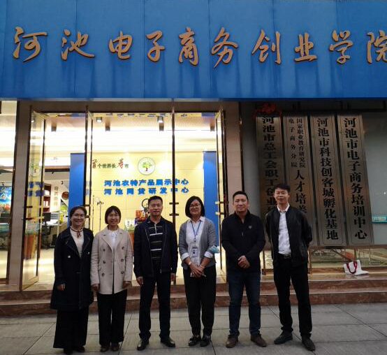 在广西现代职业技术学院财经商贸系叶主任的带领下,我校教师一行参观粽子产业学院基地大楼。