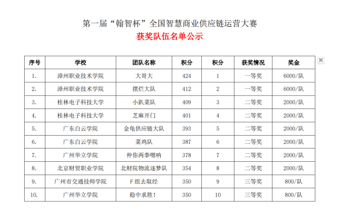 喜报二:我校学生在第一届“翰智杯”全国智慧商业供应链运营大赛中喜获佳绩