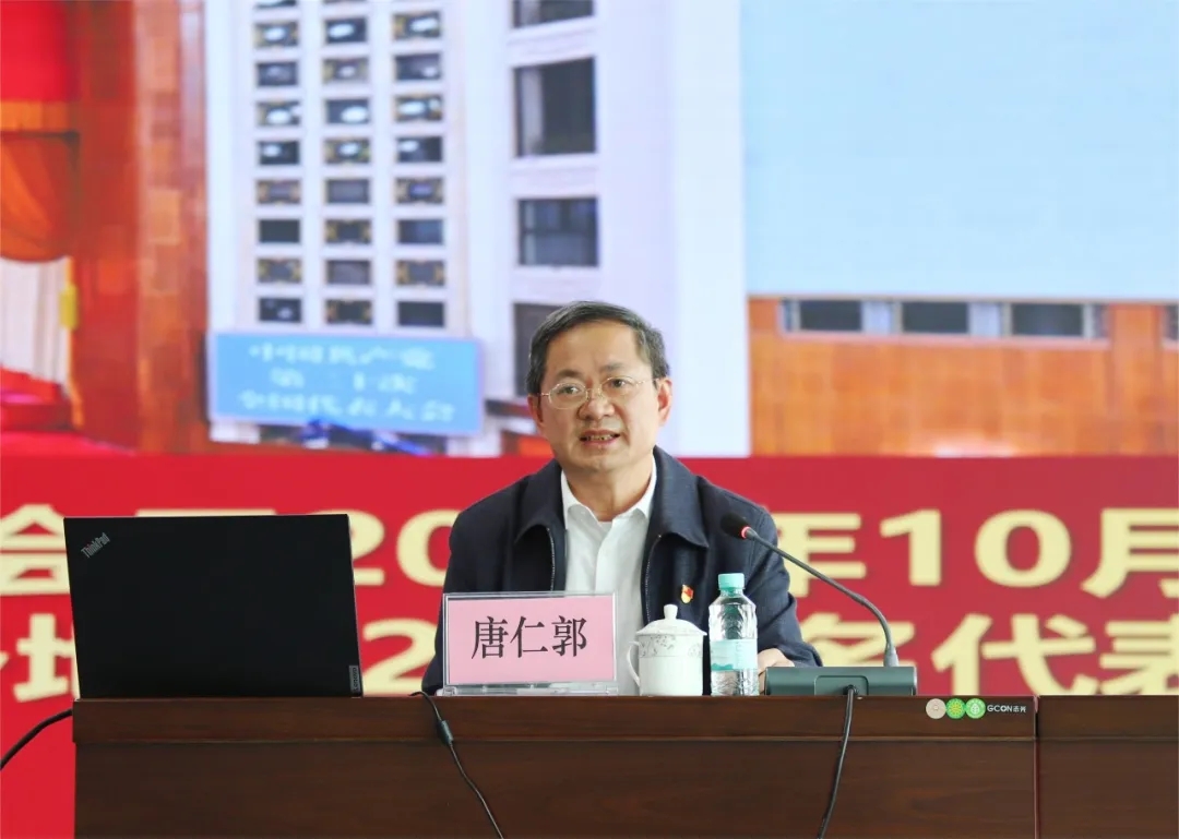 唐仁郭从党的二十大的主题和主要成果、过去5年的工作和新时代10年的伟大变革、马克思主义中国化时代化、中国式现代化、全面建设社会主义现代化国家的目标任务、坚持党的全面领导和全面从严治党、应对风险挑战等7个方面,围绕党的二十大提出的一系列新思想、新论断、新目标、新任务,进行了系统宣讲和深入阐释。在宣讲中,唐仁郭围绕习近平总书记在参加党的二十大广西代表团讨论时提出的“五个牢牢把握”“五个更大”重要要求,结合广西教育事业发展取得的成就,特别是结合职业教育的发展,对党的二十大精神进行了全面、深入的解读,嘱托青年师生在奋进中国式现代化道路上不负韶华,奋力奔跑,跑出当代青年的最好成绩。