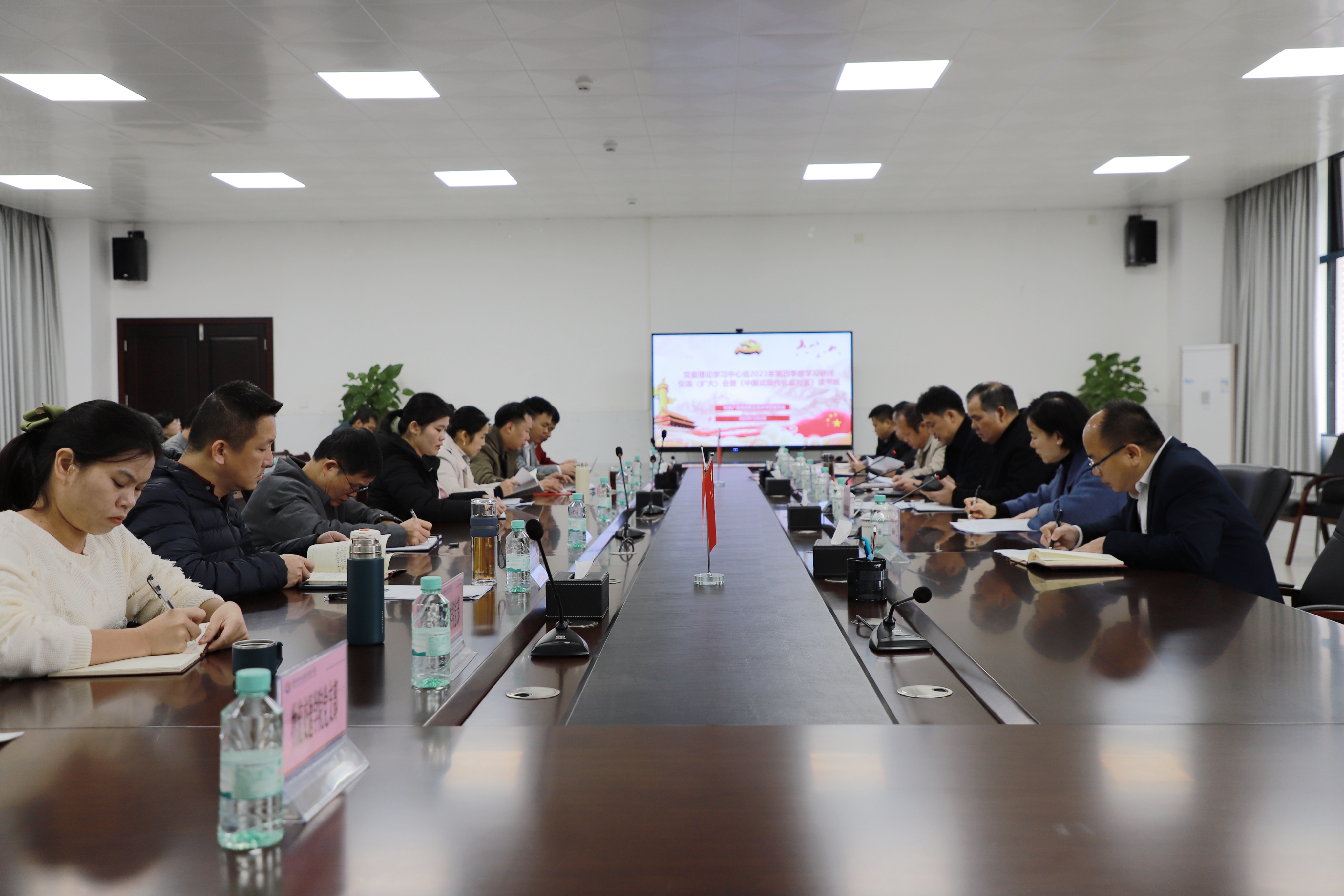 会议集中学习了习近平法治思想、习近平经济思想、习近平文化思想、习近平生态文明思想、习近平总书记关于做好新时代党的统一战线工作的重要思想、习近平总书记有关主题教育最新重要讲话精神,以及习近平总书记近期重要讲话精神,传达学习了自治区党委十二届六次全会精神以及《关于进一步提高党委(党组)理论学习中心组学习质量的意见》精神。中心组成员紧扣学习主题,依次结合分管工作谈认识、谈体会、谈举措。党政办公室、后勤管理处负责人就《中国式现代化面对面》书籍有关章节作读书体会交流。