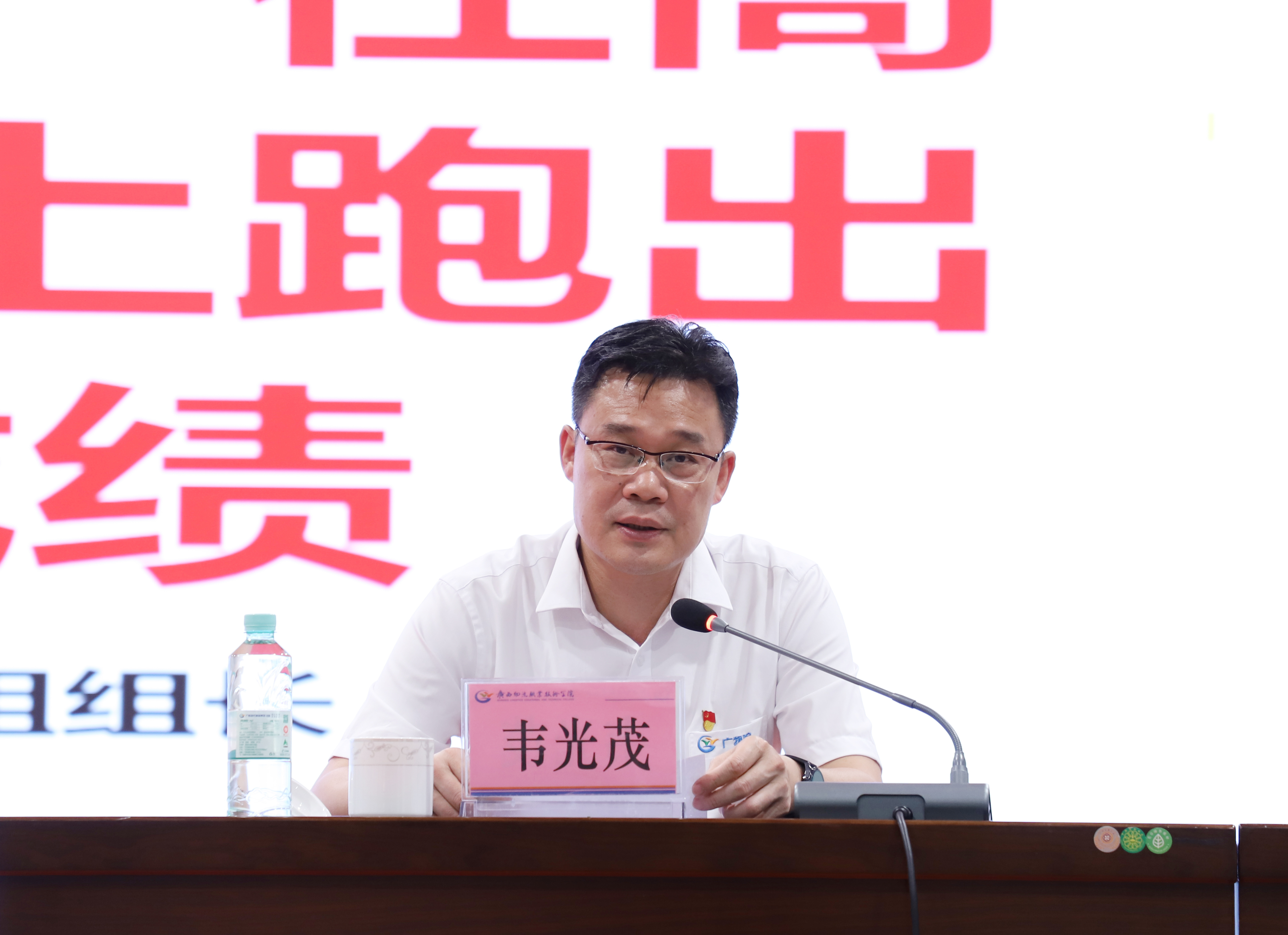 韦光茂从“深刻认识高质量发展是关系全局的首要任务、准确认识高质量发展深刻丰富的内涵要求、始终坚持精准务实的战略部署,着力推动高质量发展、始终紧跟伟大复兴领航人,立志复兴伟业踔厉笃行,在高质量发展赛道上跑出青春最好成绩”等四个方面进行授课,强调要立足新发展阶段,以高质量发展为主题,把新发展理念贯穿发展全过程和各领域,不断破解发展难题、增强发展动力、厚植发展优势,在高质量发展的道路上不断书写学校新篇章。