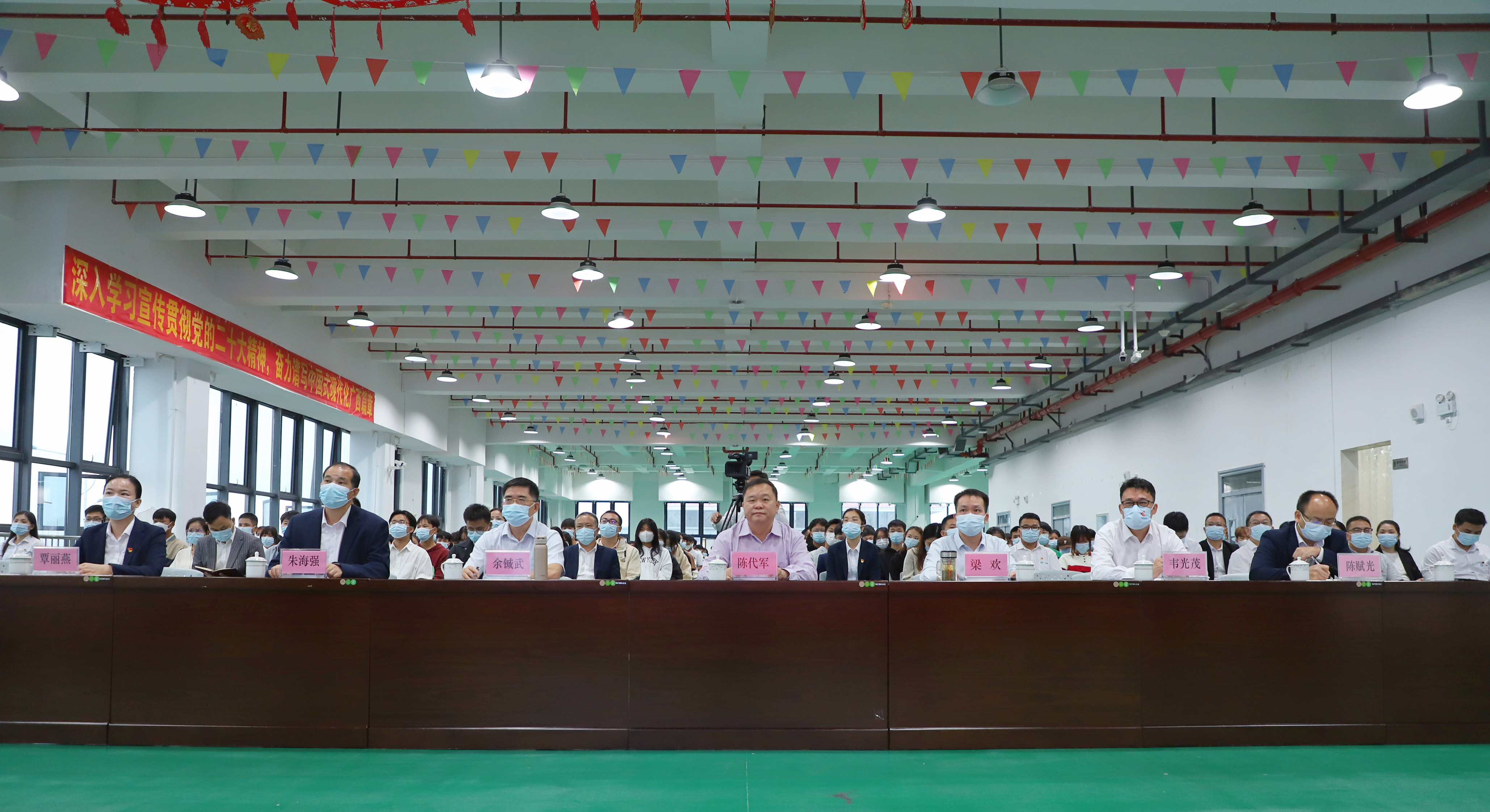 宣讲报告会以现场聆听和视频直播形式召开。贵港市委组织部副部长、市委老干部局局长梁欢,贵港市委教育工委书记、教育局局长余铖武,广西物流职业技术学院党委书记韦光茂,党委副书记、院长朱海强,纪委书记覃丽燕、副院长陈赋光,各党支部书记,各部门、二级学院负责人,师生代表在主会场聆听报告,其余师生以观看直播的方式聆听报告会。