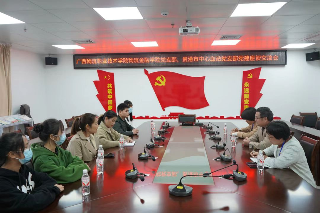 熊玉梅(左四)带领支部党员到贵港市中心血站党支部开展党建交流活动