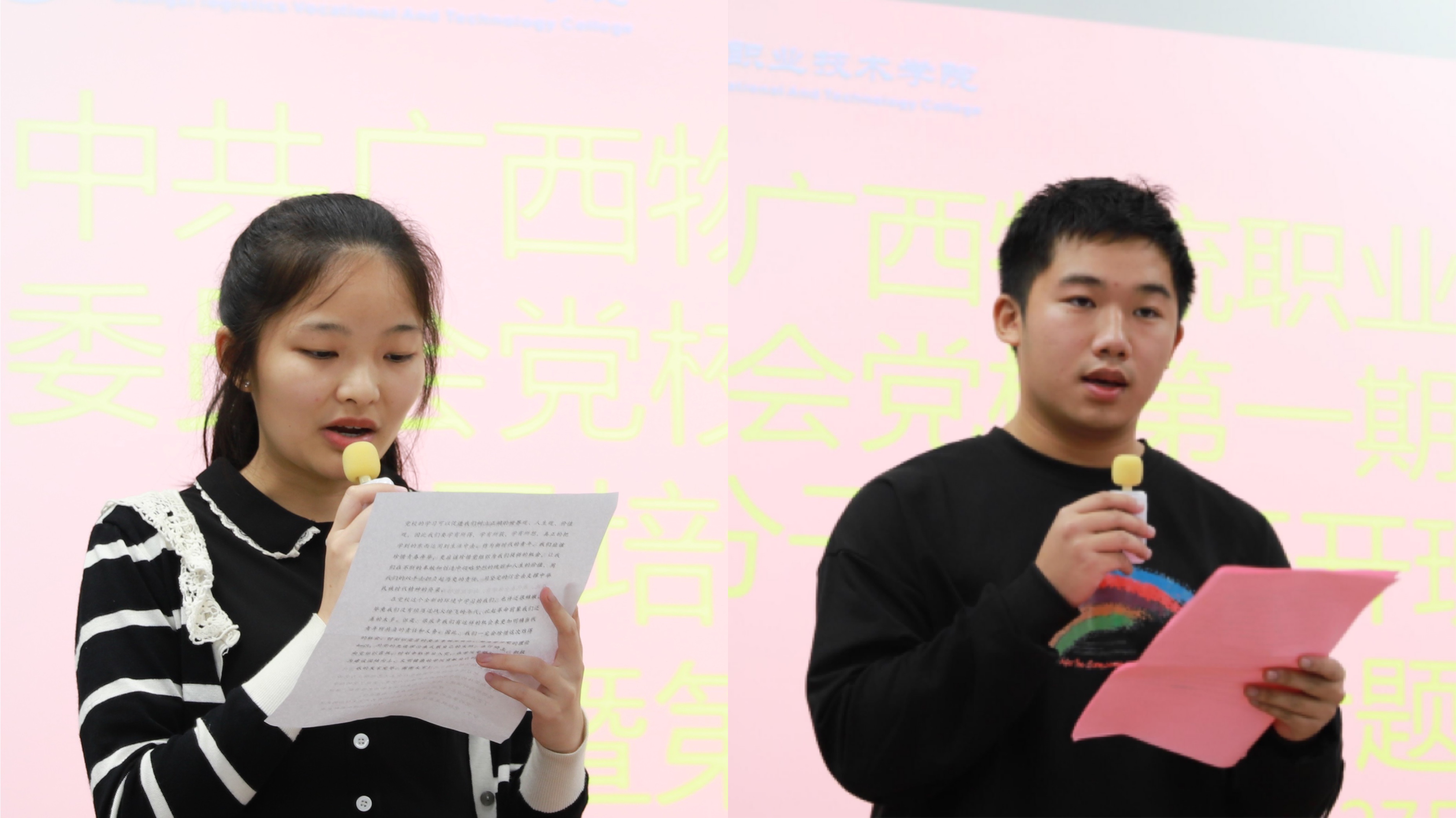 生态环保学院环境工程201班雷卓凡同学与资产财务处梁雅钧老师作为学员代表进行发言。
