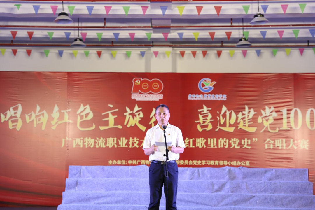 在中国共产党百年华诞之际,党史学习教育在学院广泛深入开展,通过学党史、唱红歌、听革命故事、读红色经典等活动,多途径、多方式学习党史知识,努力做到学史明理、学史增信、学史崇德、学史力行。经全院师生前期精心筹备,6月28日晚,广西物流职业技术学院“红歌里的党史”合唱比赛在实训楼举行。集团党委副书记、学院党委书记欧军,学院班子成员出席活动。全校师生参加活动。