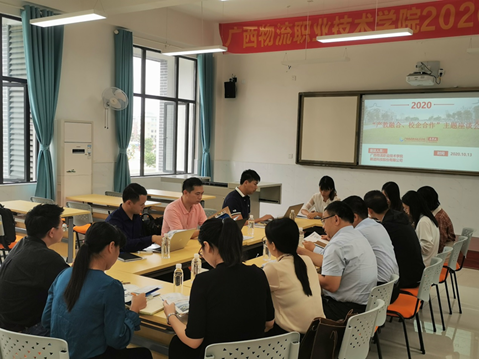 为深化产教融合,推进校企合作,培养一批专业知识扎实、实践能力强、具有良好职业道德的高层次技能应用型人才,促进物流商学院人才培养高质量发展,20201013日,广西物流职业技术学院物流商学院(以下简称“商学院”)和新道科技股份有限公司(以下简称“新道科技”)在宜贵北楼202教室共同召开座谈会。商学院负责人梁杰、交通学院负责人莫军、教务处负责人卢澄林、商学院全体教师和新道科技广西区总经理黄堪敬、副总经理吴征科、解决方案顾问黄河景等参加座谈。座谈会由商学院负责人梁杰主持。