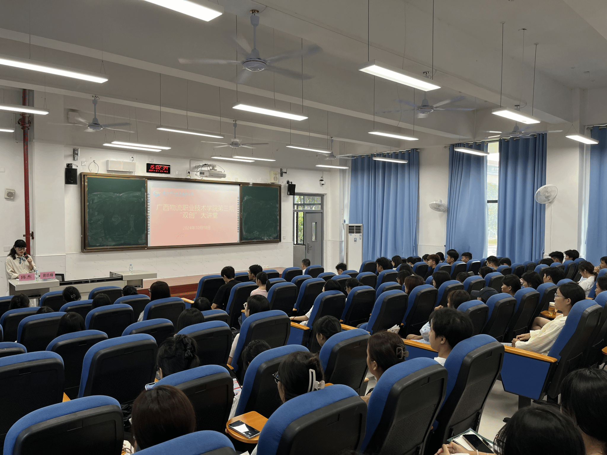 2024年10月18日,广西物流职业技术学院第三期“双创”大讲堂在学院宜贵南楼103阶梯教室成功举办。本期大讲堂邀请了广西大学生创业就业研究会副秘书长黄浩楠作专题授课。