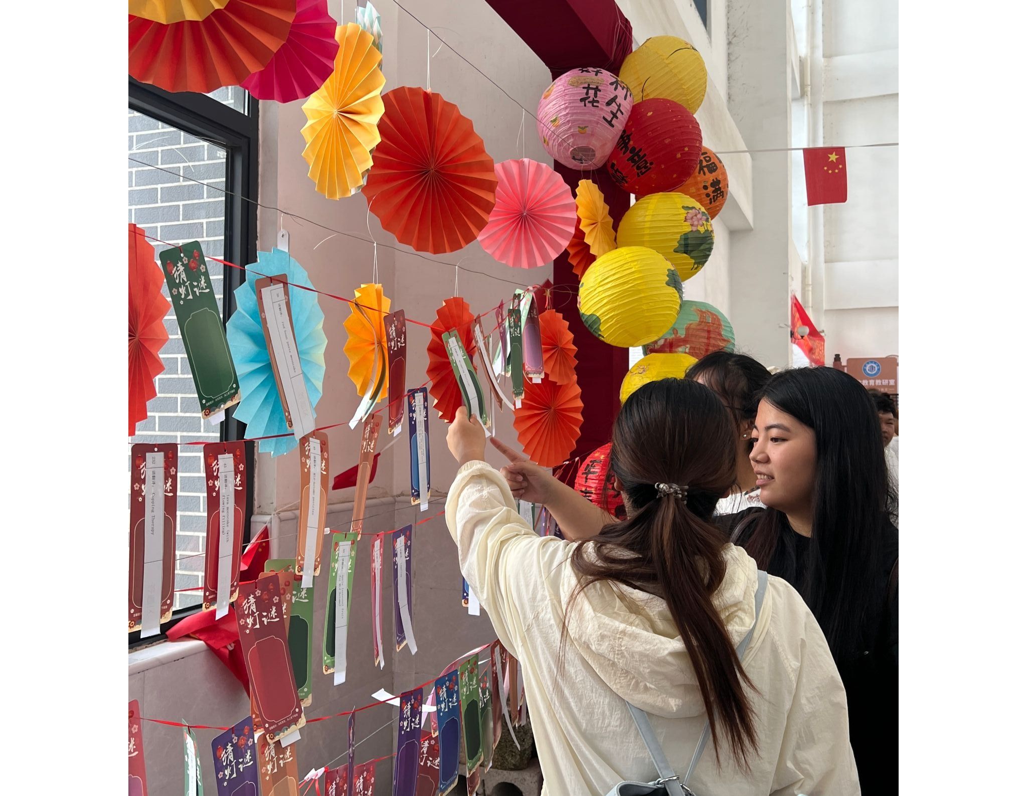 为了促进英语学习氛围,增进同学们对中华传统文化的理解与热爱,英语教研室于9月24日在宜贵楼西门厅举办“中秋英语灯谜嘉年华”活动。此次活动旨在通过趣味横生的英语灯谜,将英语学习与传统文化庆祝相结合,让同学们在享受节日氛围的同时,提升英语语言能力,增进文化交流。