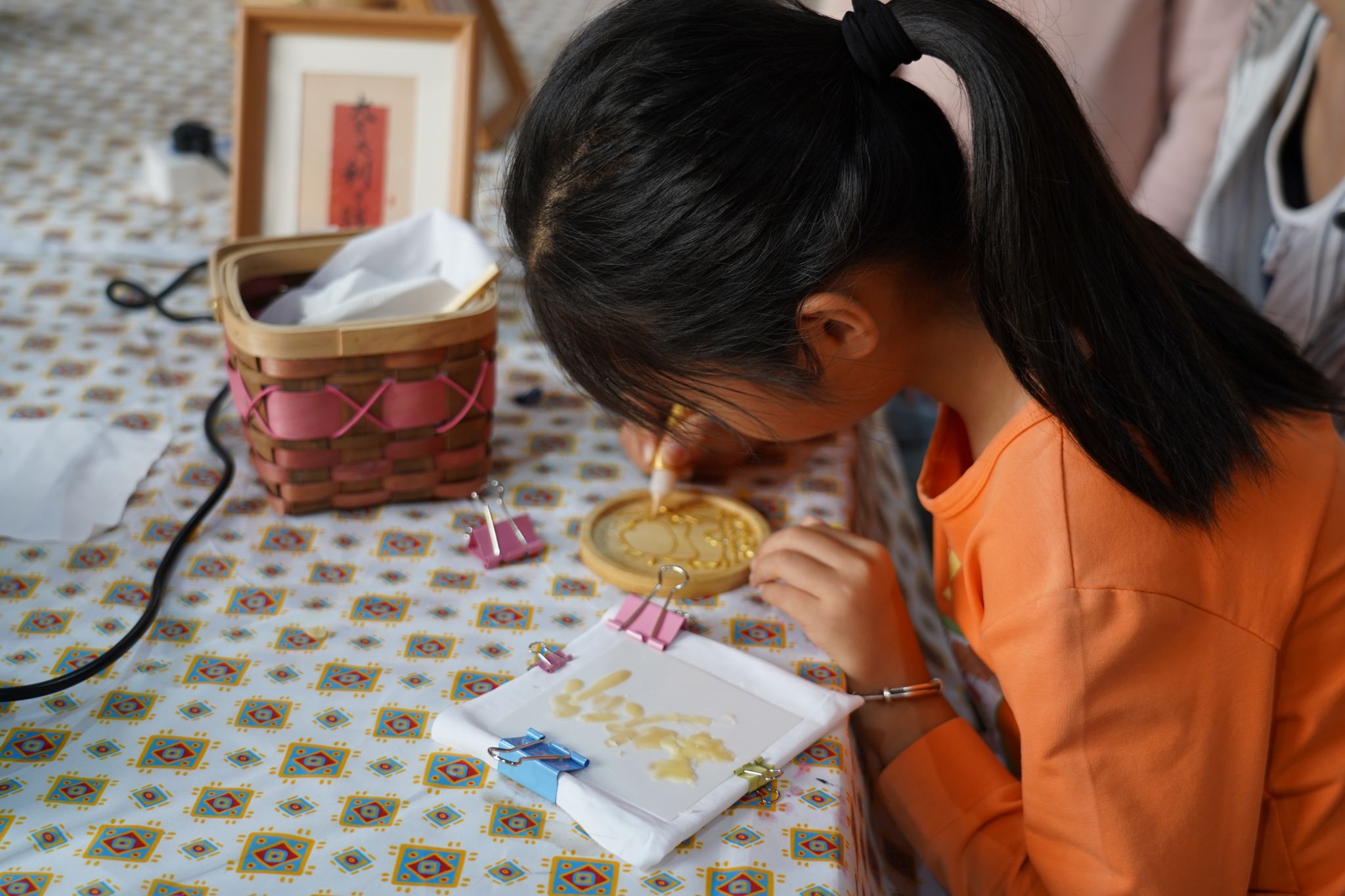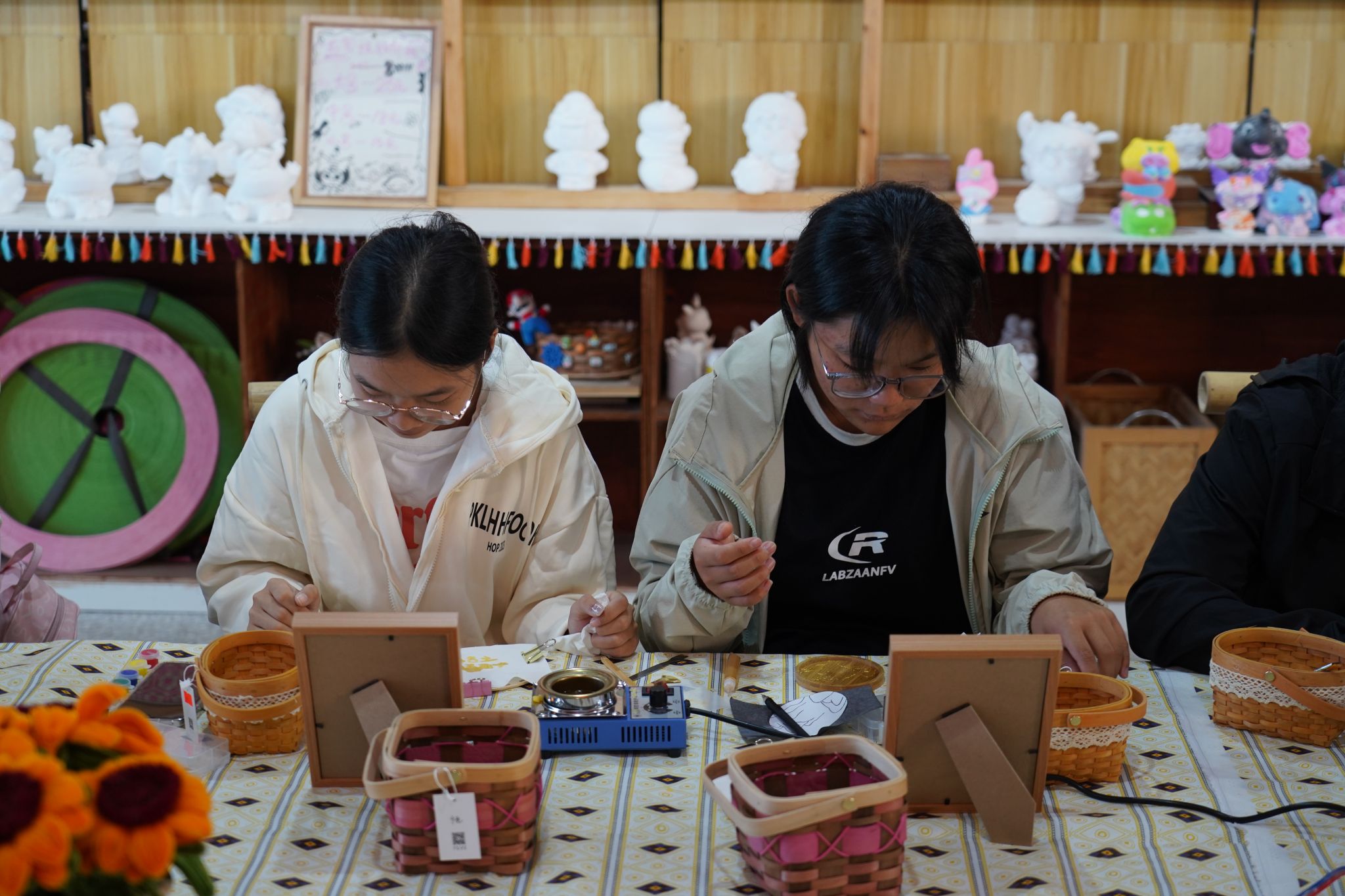 在平南山里文化研学基地,学生们沉浸于三项富有特色的非遗手工艺实践。在珐琅杯垫制作中,同学们细心掐丝、精心点蓝,于方寸之间体悟传统工艺的严谨与精美;在蜡染艺术体验中,大家以蜡为墨,以布为纸,在点蜡、浸染、脱蜡的过程中感受民间智慧的深邃与蓝白之美;在“一碗莲”甜品制作环节,同学们巧手处理食材,用心拼制造型,在烟火氤氲中领会中华饮食文化的精粹。一系列非遗体验,不仅锻炼了学生的动手能力,更深化了其对传统文化的认同与自信。