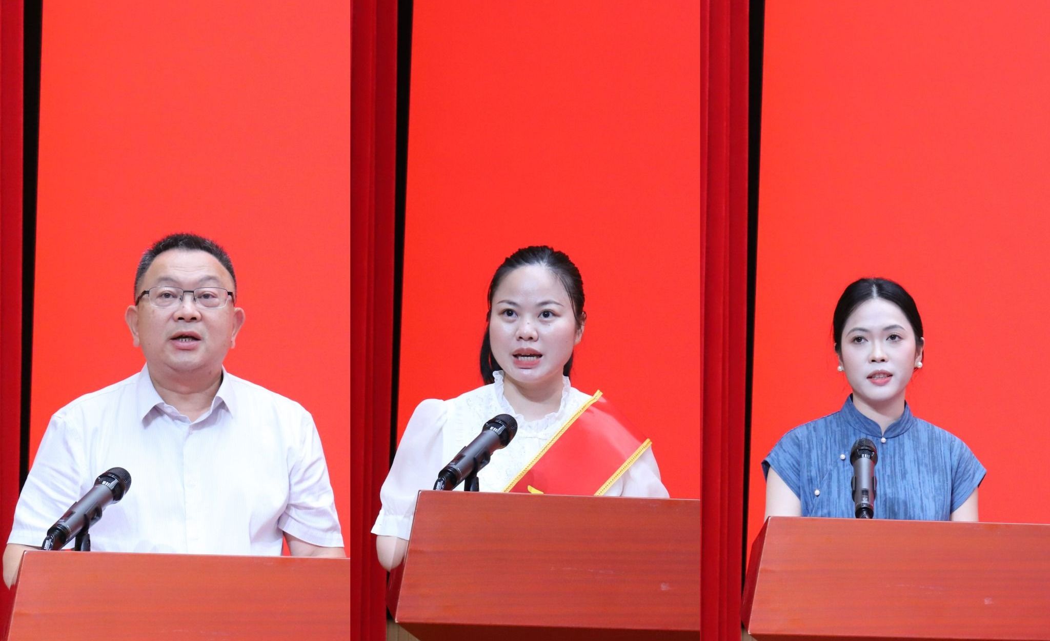学校领导班子成员杨一笔、覃丽燕、陈继文、陈赋光、梁杰,全体中层干部、新入职教师及师生代表参加大会。