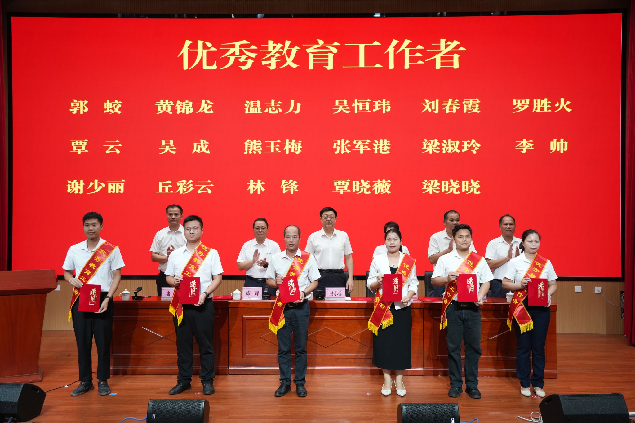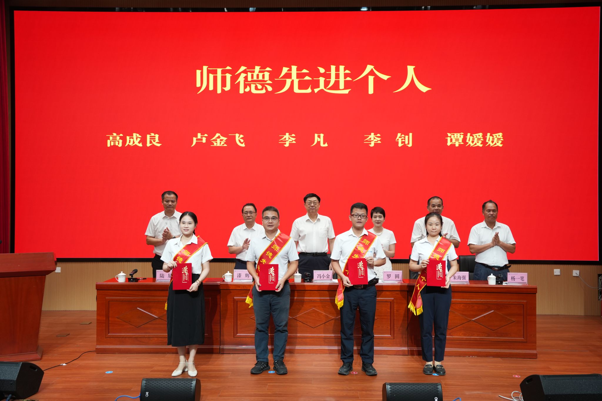 会上,主席台领导为优秀教师代表、优秀教育工作者代表、师德先进个人代表颁发荣誉证书。