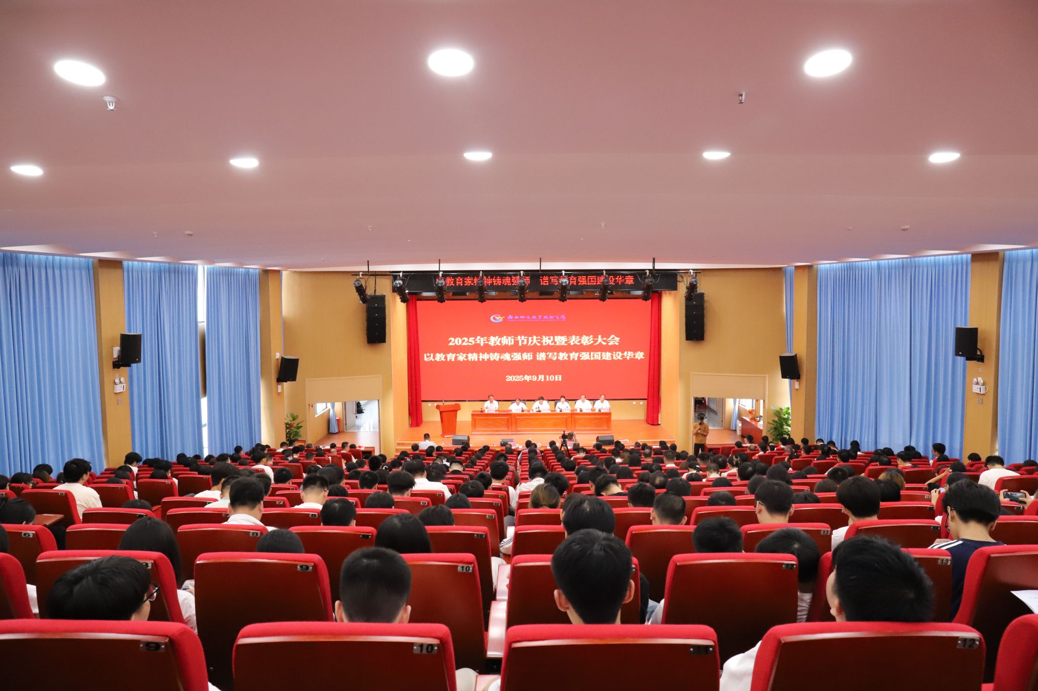 2025年9月10日,广西物流职业技术学院举行庆祝第41个教师节暨表彰大会,对23名优秀教师、17名优秀教育工作者、5名师德先进个人进行表彰,举行新老教师“结对传帮带”拜师仪式、新入职教师集体宣誓,交流育人经验,为推动学校事业高质量发展汇聚奋进力量。