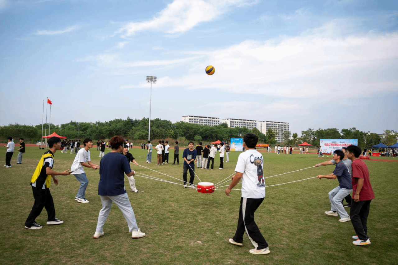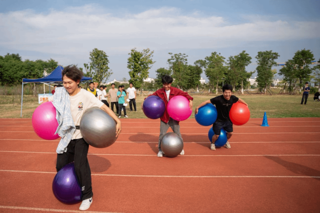 绿茵场上吹响了激情的序章!毛毛虫、巨型排球、击鼓颠球、压板跳绳、背篓绣球等十余个特色趣味赛项,将趣味、挑战、团体、协作融合其中共吸引了1100余名学生踊跃参与。同学们的身影活跃在每一项比赛中,这些项目不仅为学生们提供了释放压力、宣泄情绪的渠道,还考验了他们的团队协作能力。