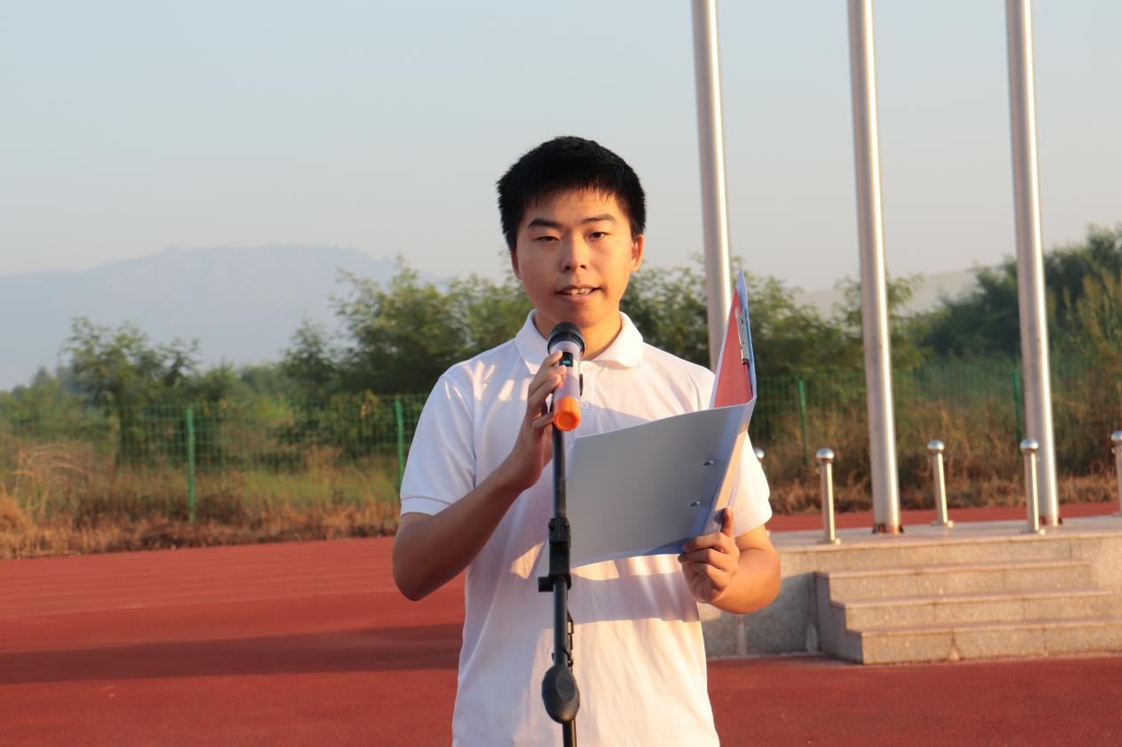 学生代表陈鸿嘉同学做“国旗下演讲”,号召同学们坚定继承和发扬革命传统,大力弘扬一爱国主义为核心的民族精神,胸怀忧国忧民之心、爱国爱民之情,维护国家主权完整、团结统一。