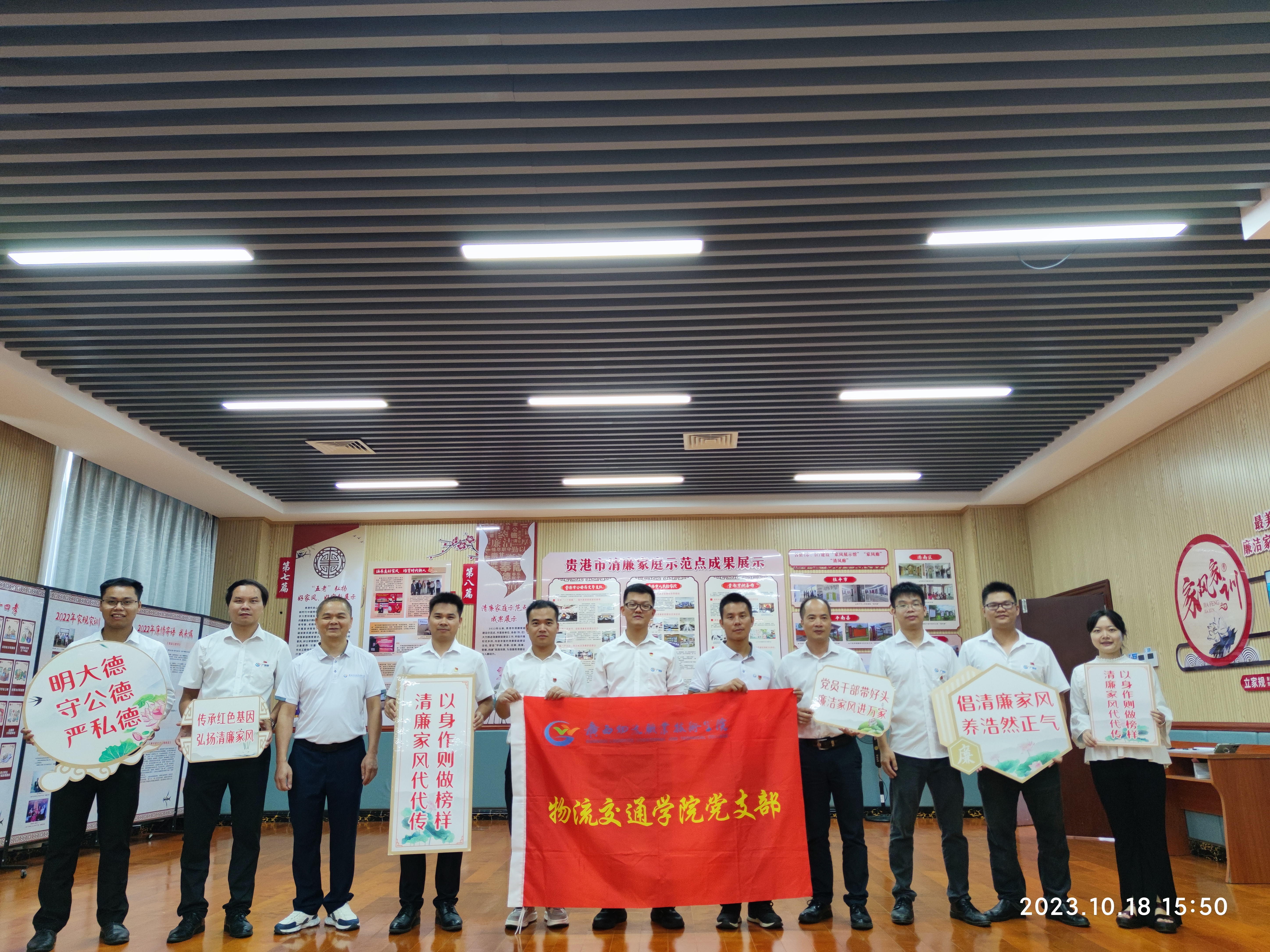 为深入贯彻落实党的二十大精神和习近平总书记关于注重家庭家教家风建设的重要论述,进一步落实学院“清廉学校”建设要求,教育引导教职工干部崇德向善,筑牢廉洁自律的思想防线。10月18日下午,人文教育学院党支部联合物流交通学院党支部组织本院教职工到贵港市清廉家风家教宣传教育基地开展“传承廉洁家风,涵养清正人生”主题党日活动。