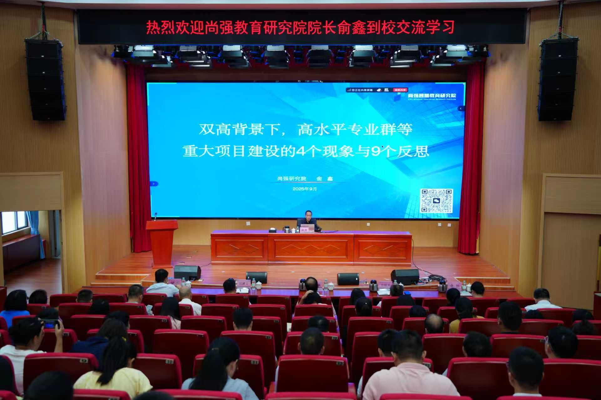 9月22日,我校邀请尚强研究院院长俞鑫到校作题为《“双高”背景下高水平专业群等重大项目建设的四个现象与九个反思》的专题培...